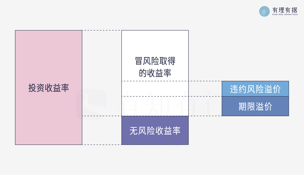 为了吸引投资者,信用债对投资者承担违约风险的行为进行相应的收益补偿,这就是违约风险溢价。换句话说,信用债投资者承担了违约风险,才能拿到违约风险溢价,获得更高的收益。
