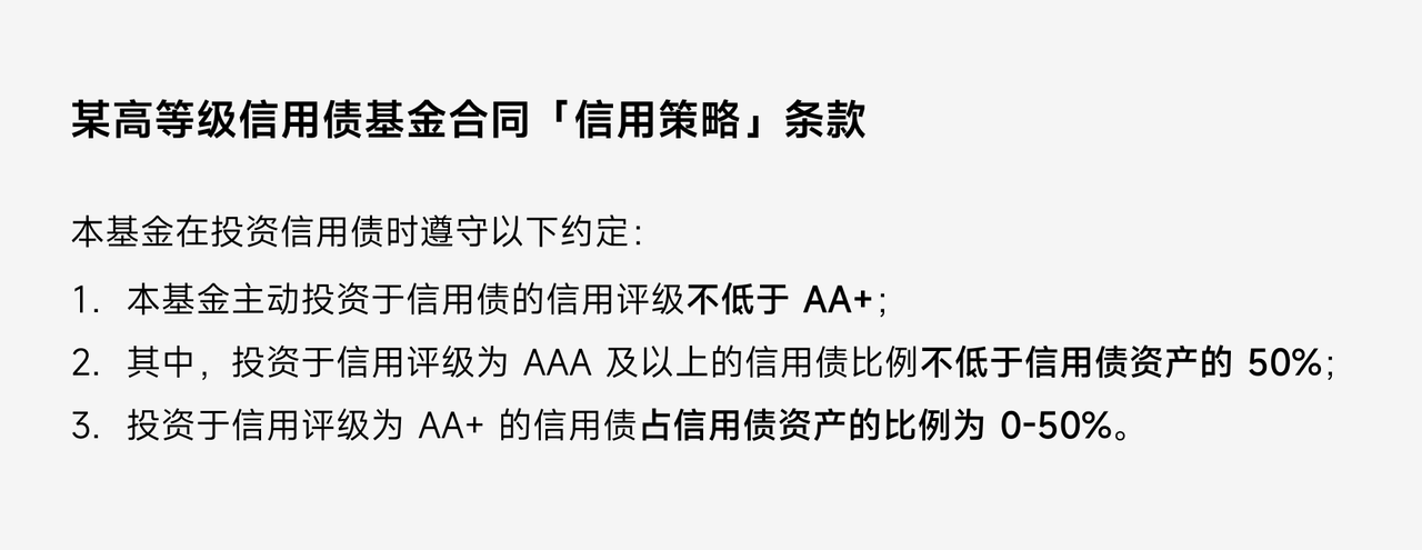 此外,选择债券基金时,可以在它的基金合同 - 投资策略 - 信用策略中,查看它投资不同信用等级债券的上限,比如: