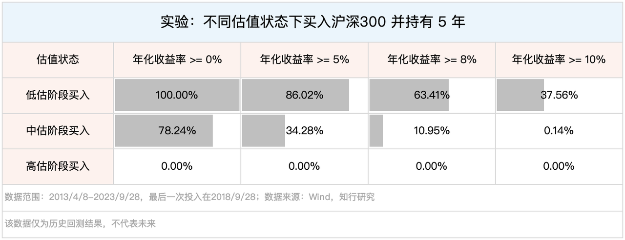 沪深300的温度计低于 30° 视为低估,30° 至 70° 视为中估,70° 以上视为高估。在不同估值阶段投入的收益情况如下图所示: