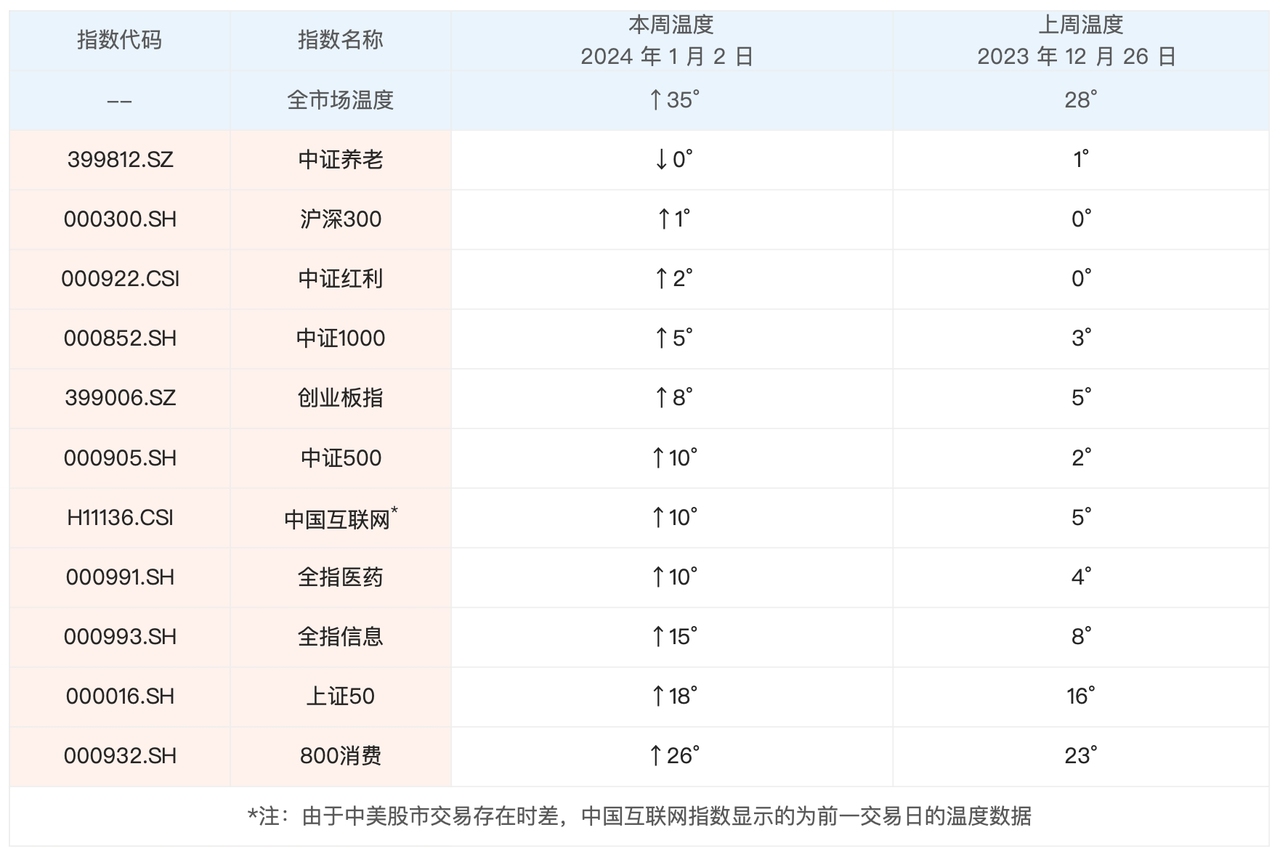 如果你仔细对比上面具体指数的温度变化,会发现多数指数的温度上涨幅度较大,例如中证500从 2° 涨到了 10°,这个幅度比指数涨跌幅要大。另外中证养老过去一周上涨了 2.47%,但指数温度却下降了。为什么会这样呢?原因是 12 月份,图里A股相关的指数都进行了成份股调整,这个调整在 12 月最后一个交易日才得以体现。