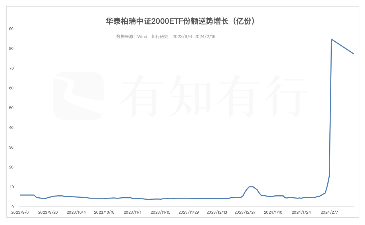 2 月 6 日,汇金宣布扩大 ETF 的增持范围,加大增持规模。通过观察 ETF 的份额变化情况会发现,中证500、中证1000和中证2000ETF的份额出现了快速增长。汇金等投资者通过购买 ETF 的方式,给市场输送流动性,缓解了中小盘股、微盘股大幅下跌的局面。