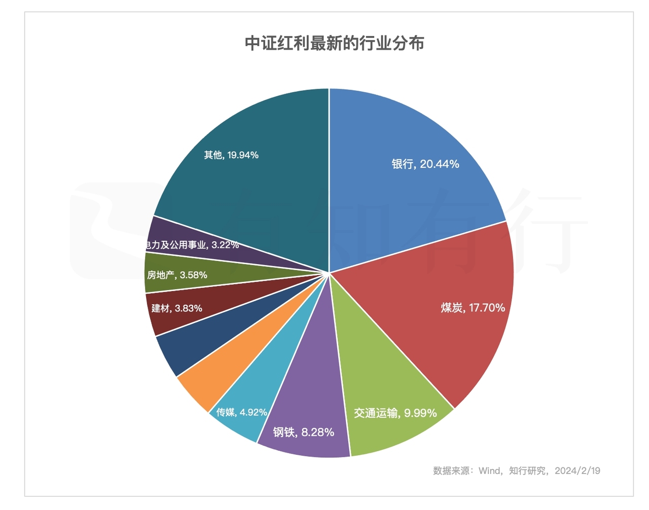 上图展示了中证红利最新的行业分布情况,其中银行、煤炭、交通运输的占比较高。今年以来,这三个行业都出现了上涨,尤其是煤炭和银行。中信煤炭指数今年已经上涨了 14.18%,煤炭已经连涨六年,作为当年接受改革出现长期大幅下跌的行业,煤炭这几年的默默上涨,已经把之前下跌的部分涨回来了。中信银行指数今年上涨了 9.84%,银行前两年还处于调整中,今年才出现整体上涨。