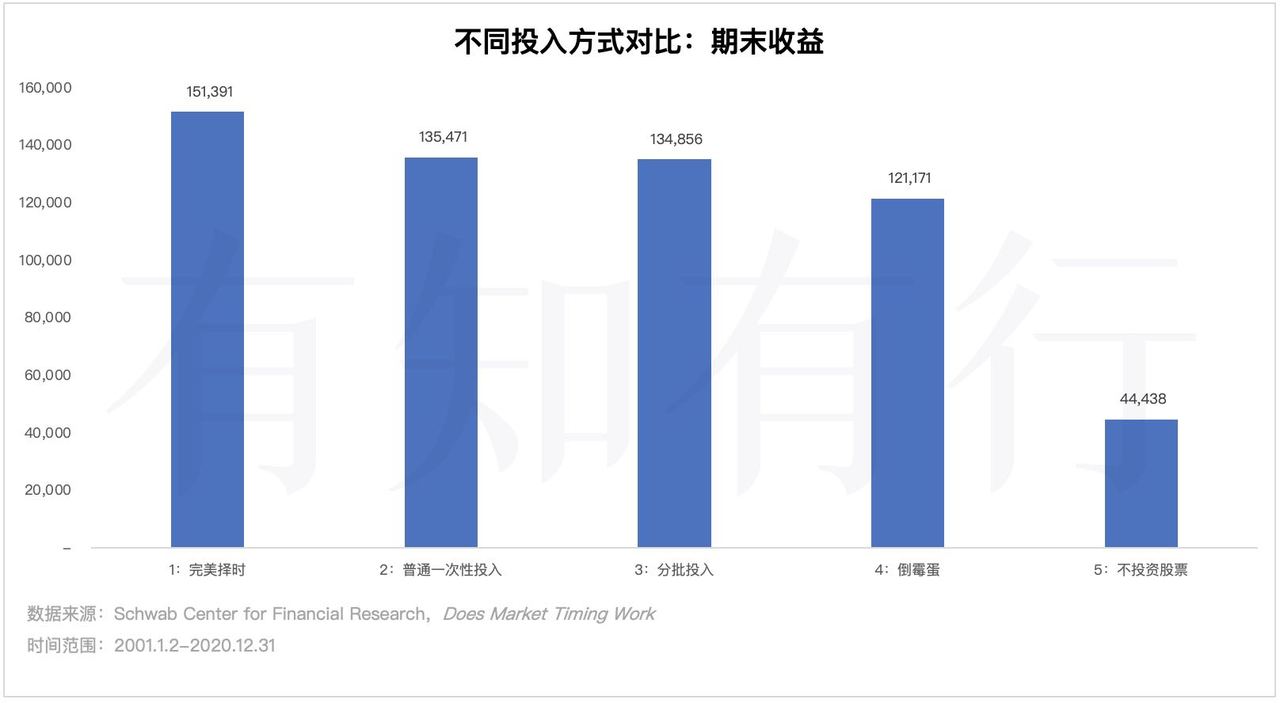 即使是每年都在最高点投入的「倒霉蛋」,二十年后的期末收益也会比完全不投资股市的收益好。