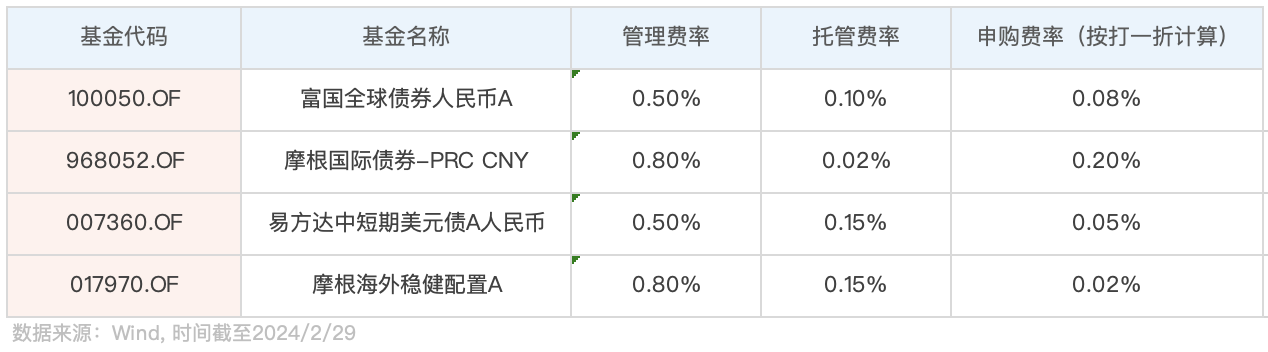 这两点造成了它的费率,相对海外长钱持仓的其他海外债基金略高,管理费率是 0.8%,托管费率是 0.15%,申购费会稍低一些。费率是投资者在挑选基金时需要考虑的因素,但不是主要因素。我们首要考虑,资产是否符合我们的需求。毕竟我们投资海外的目的是获取世界经济发展的红利,并与国内资产组合进行一定的风险分散,所以首选发债主体在海外的债券。