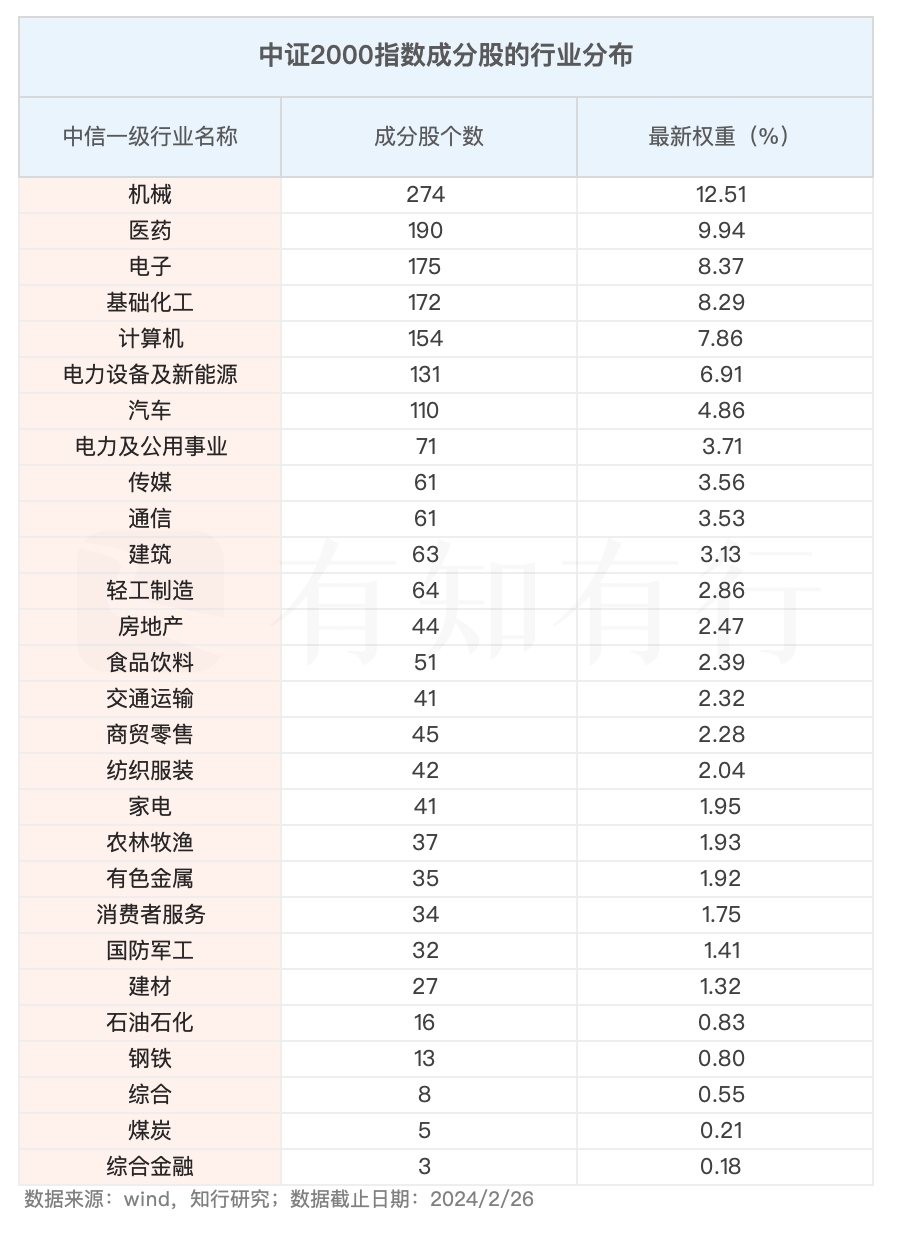 如果只看小盘股,中证2000做到了行业上的分散配置。