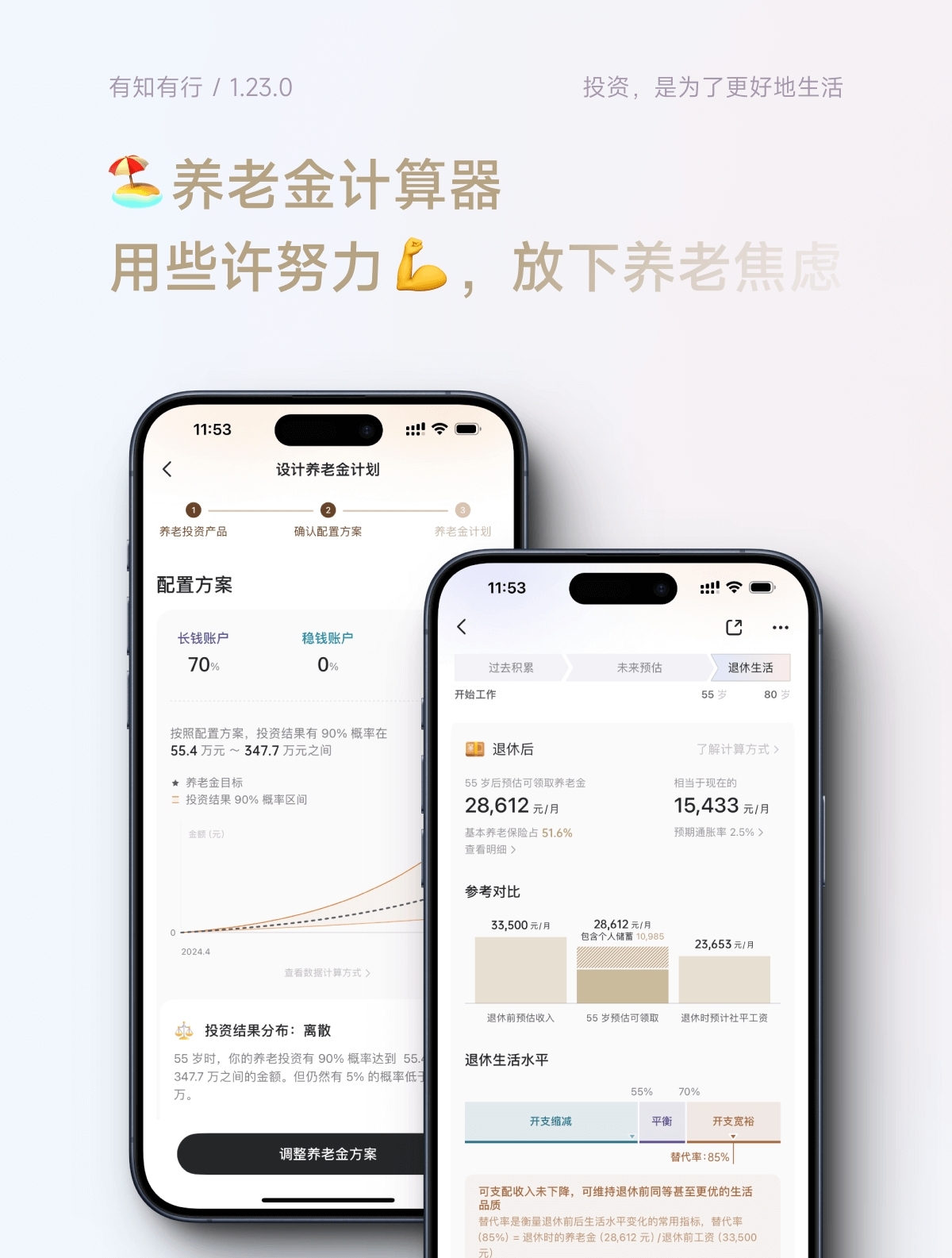 如果我们的思考和产品设计符合你的期待,我们诚挚地邀请你更新至最新的 1.23.0 版有知有行 App 在「有行」- 「养老金计算器」中体验。也期待你的反馈,帮助我们把养老金计算器打造得更好。