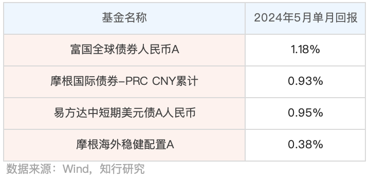 债市方面,五月份美国十年期国债收益率从 4.68% 降至 4.51%,美国十年期国债期货价格同期上涨 0.58%。海外长钱持仓的海外债基金在经历四月的下跌后,也出现了一定程度的反弹。