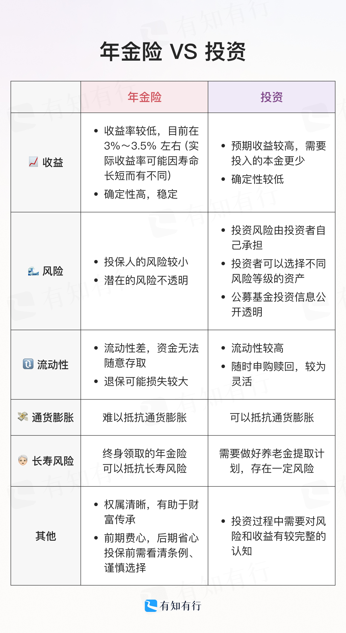 在《不吹不黑,养老钱应该买年金险,还是投资?|金栋说》中,金栋分析了在养老场景下,投资与保险的异同,不同的需求应该如何选择,如果对这个问题还是不清楚,可以看看这个视频及对应的文章。