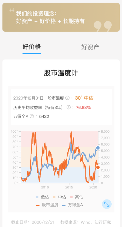 有知有行会带领大家,在低估温带多买一些,创造好的安全边际,在高估温带更加谨慎,甚至部分卖出。这样长期坚持下去,不但可以获得更好的长期收益,也会因为持有成本相对便宜,在过程中保持更好的心态。