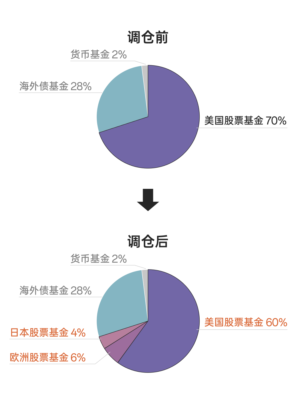 6 月 6 日,我们注意到海外长钱组合进行了调仓。组合从原来持仓 70% 的美股,变成了 60% 美股 + 6% 欧洲股票 + 4% 日本股票,原来集中于美股的组合变得更分散了
