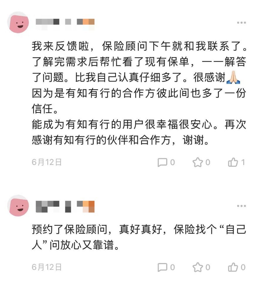 我们的「家庭保险服务」,是与持牌保险经纪公司「慧择」合作的。他们旗下有一个专门服务有知有行用户的顾问团队,负责保险咨询与投保、售后服务。