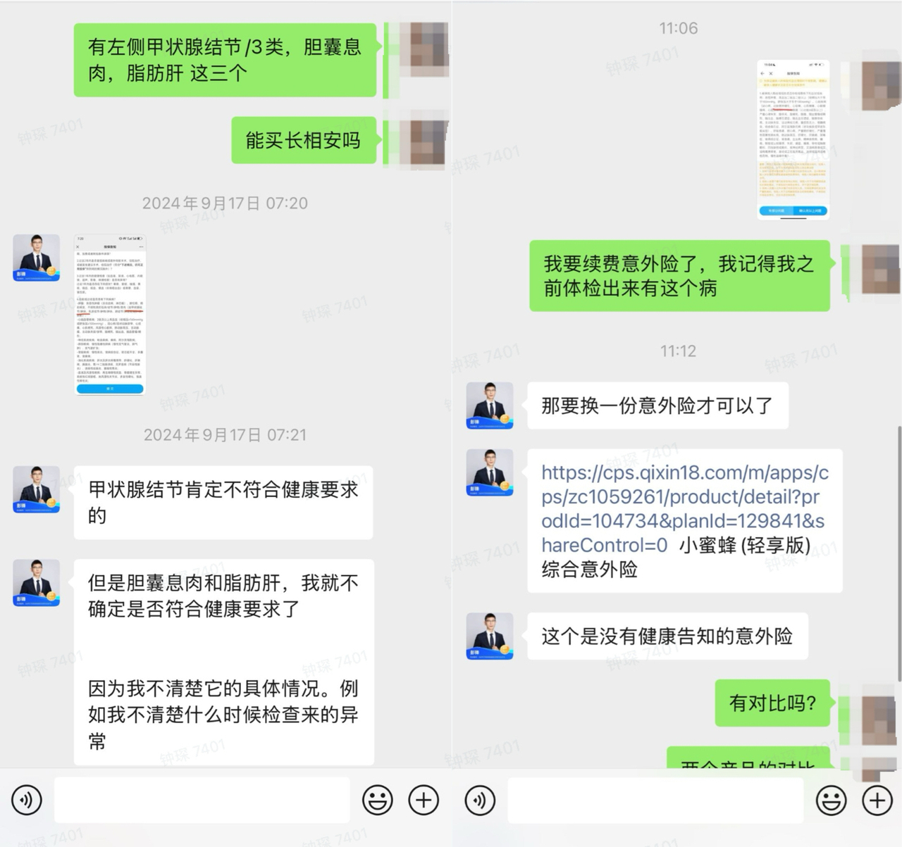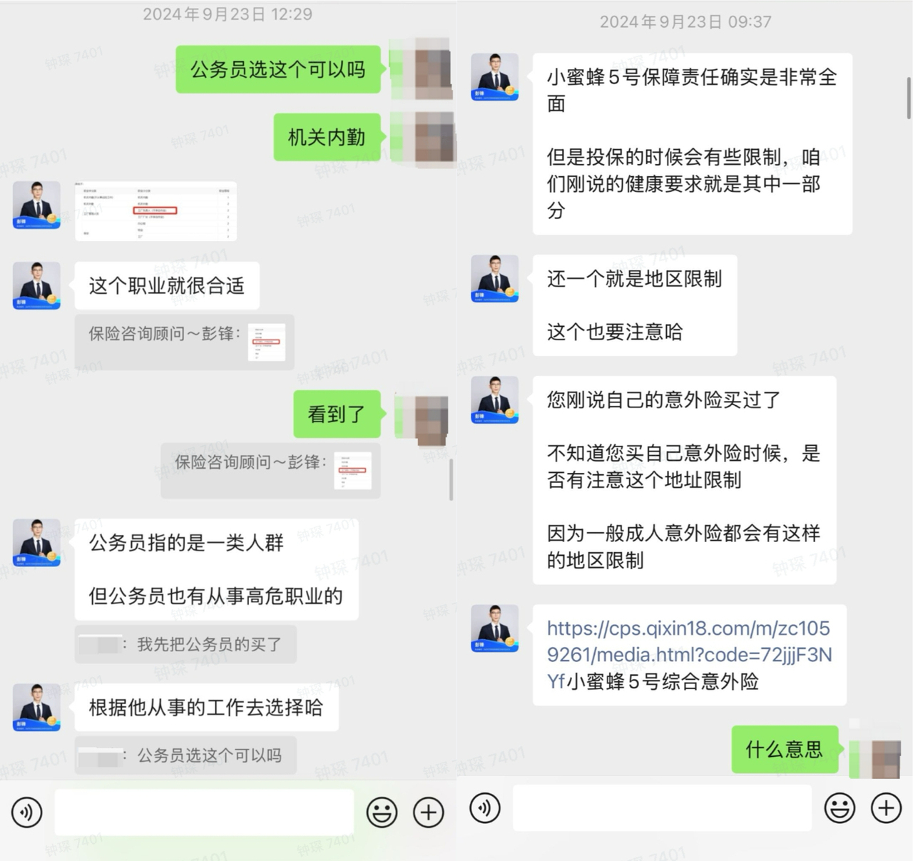 以下是我司一位伙伴和保险顾问的聊天,确认过之后,就放心很多。