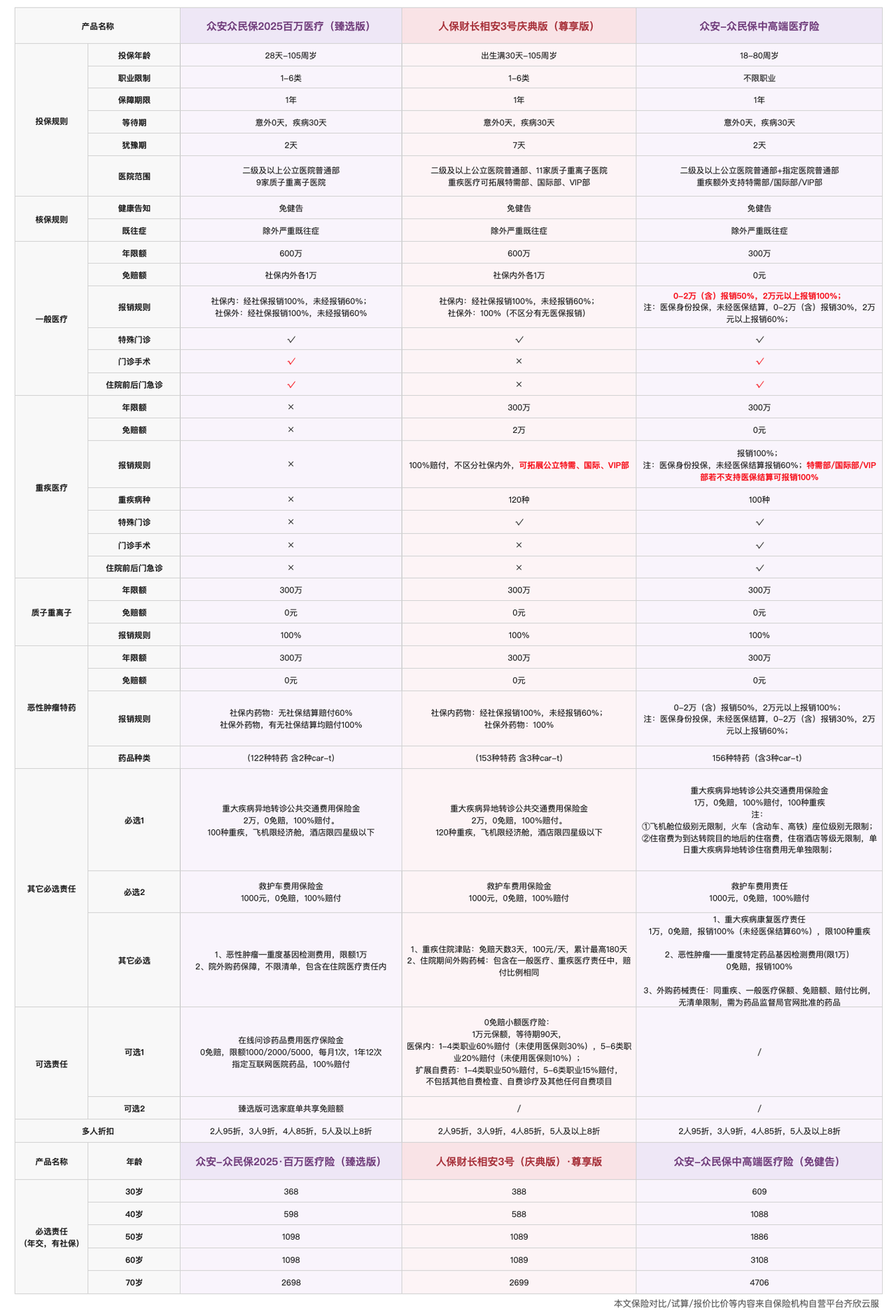 它的亮点在于,既有众民保2025 在基础保障上的完善,又有长相安 3 号庆典版重疾扩展到特需医疗的优势。如果不想做选择,这款产品可以一次性满足。