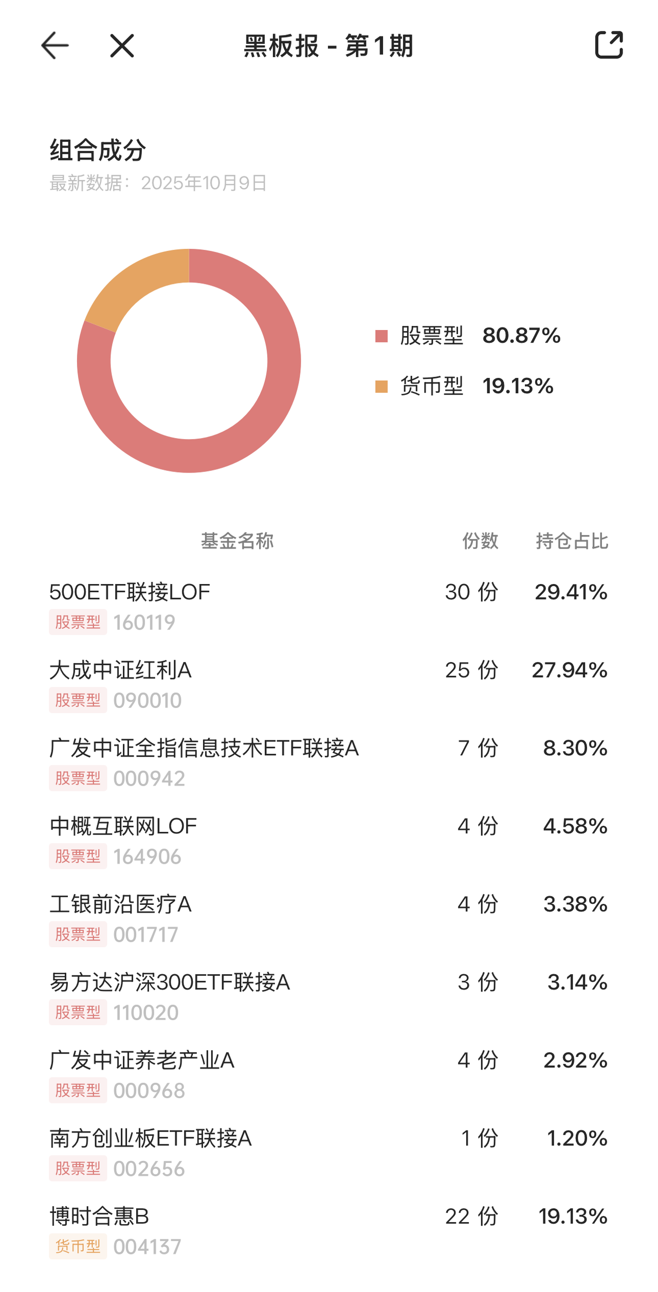 怎么知道现在黑板报的整体持仓情况和各基金比例