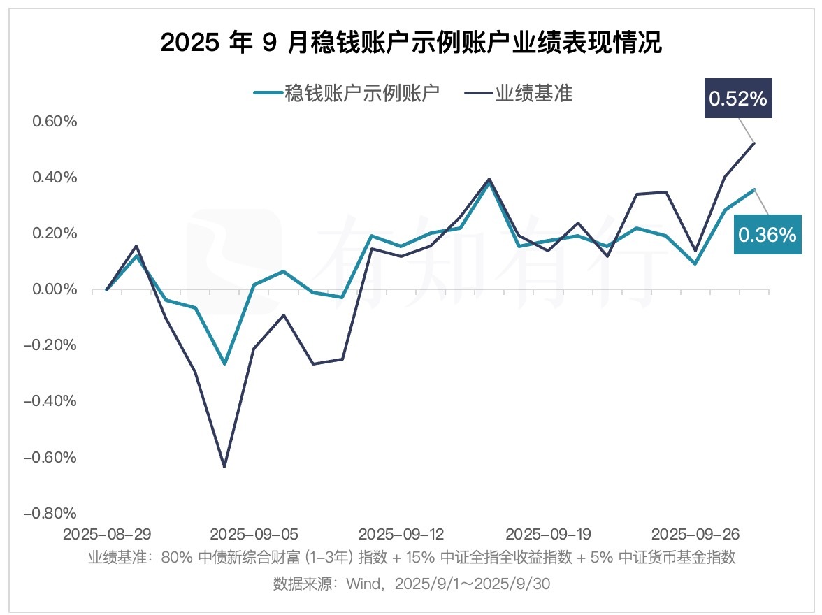 本周又逢月初,是我们更新稳钱账户月报的时候。首先来看看稳钱账户 2025 年 9 月的表现情况。