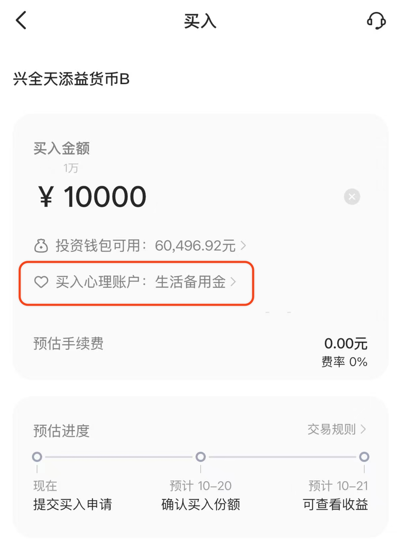 兴全天添益货币B,到账时间是 T+1,不支持快速转出,可以买入到特定的心理账户中。