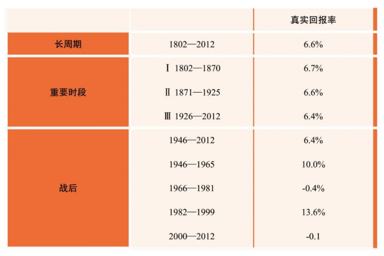 表 1:1802 年至 2012 年期间美国股市不同时段的回报率