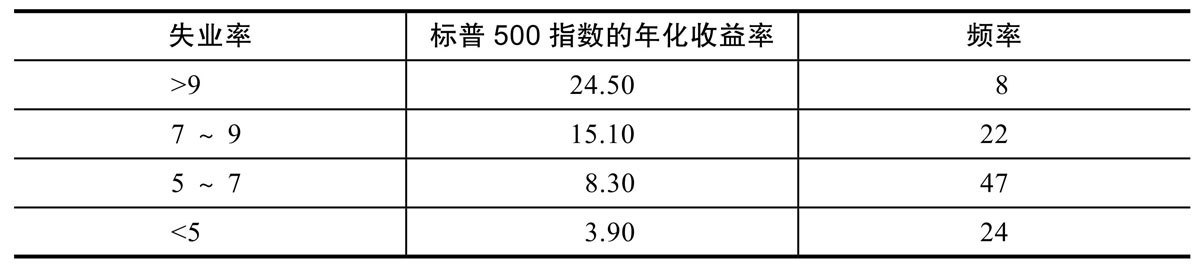 进一步解构以上变量之间的关系,下表显示了不同失业率对应的股市投资收益率以及发生的频率。当市场看起来最坏的时候,实际上那就是最好的投资时机。如果你要等待情况转好,就会错失机会。
