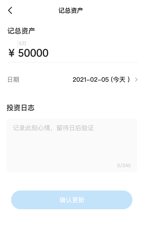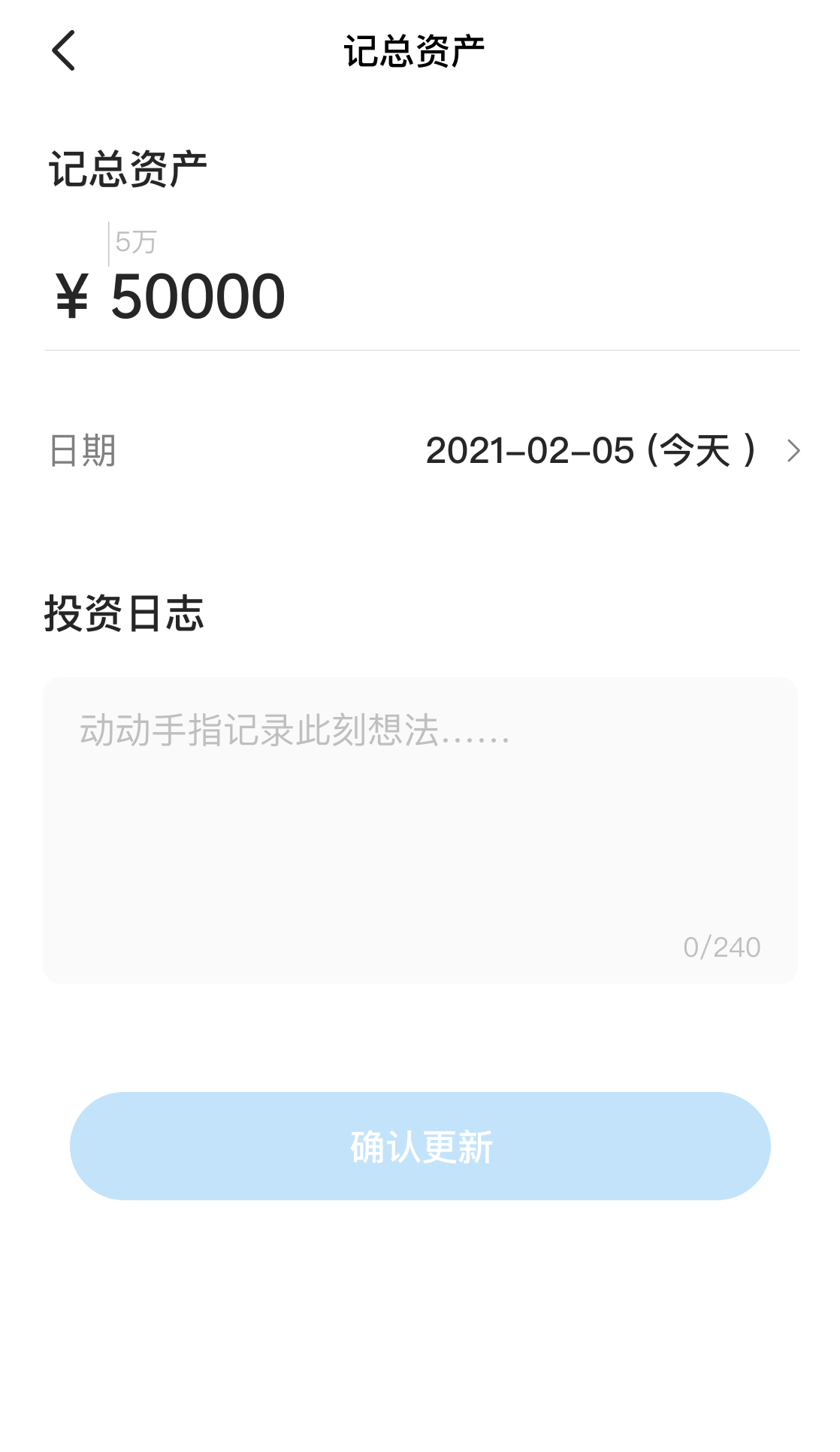 你可以记录任意一天的总资产。这个功能其实之前已经提过,和新手村中「记录第一笔资产」是同一个功能,就不再赘述了。
