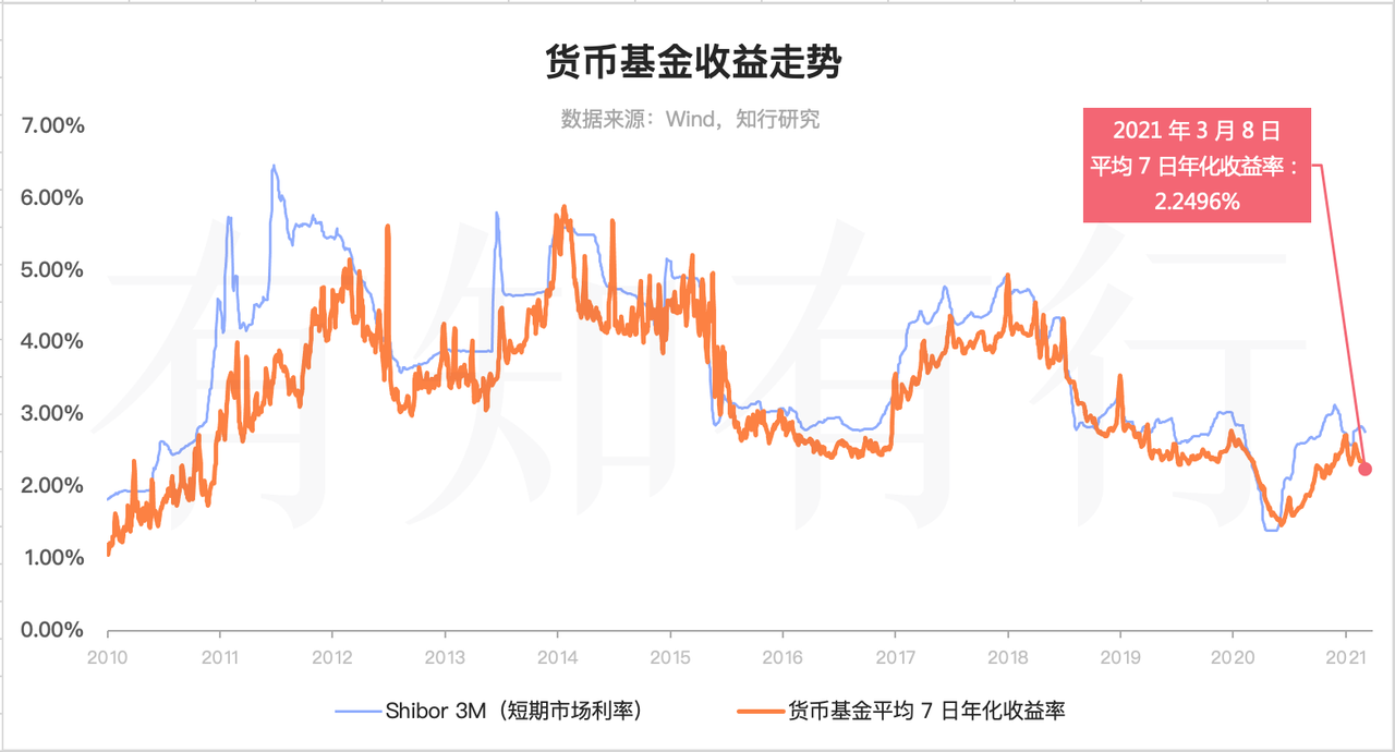 近期市场短期利率小幅下行,受此影响,货币基金收益率也有所下滑,截止 3 月 8 日,货币基金平均 7 日年化收益率为 2.2496%。银行活期理财收益更高一些,年化收益率约 3.1%。