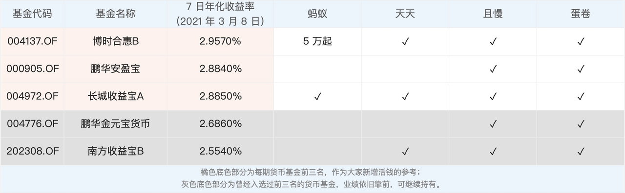 目前我们挑选的前三名的货币基金,7 日年化收益在 2.8% 以上,在货币基金中排名都很靠前。虽然货币基金目前整体收益不高,但我们还是尽力去帮大家挑选更好的产品。