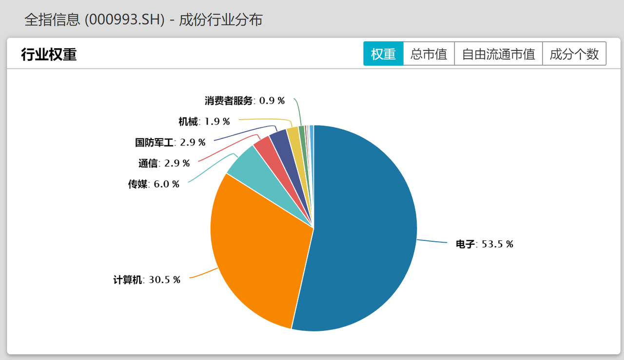 从行业分布能看出,全指信息包含了国内信息技术的主要领域,信息技术一直是国家主推的,发展前景值得期待。
