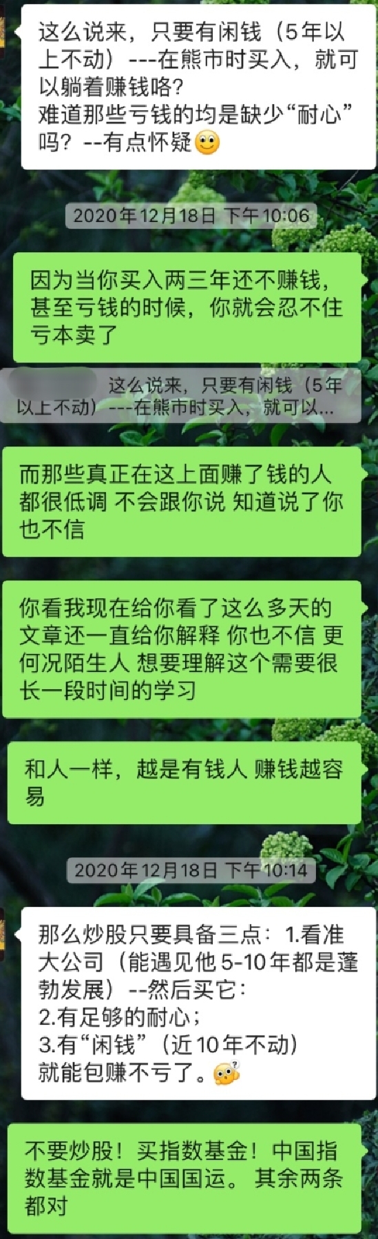 比如他们在我科普完稳健理财之后二话不说就把钱转给我打理;在我提出带他们系统学习投资知识时也愿意尝试;在收益率不达预期时接受心理按摩,还把钱打给我加仓。