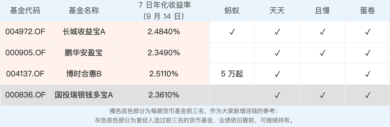 本期筛选后,货币基金结果依旧和上期一致,我们挑选的产品业绩稳稳地排在前面,撒花🎉。