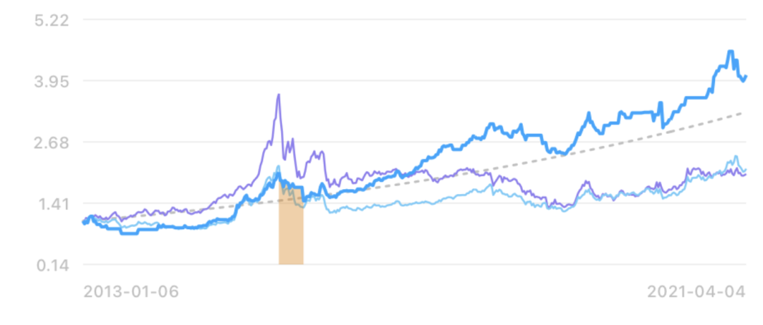 1)我挑选的这些股票,在 8 年间大幅超越了指数,这部分超额收益大概在年化 5% 左右;