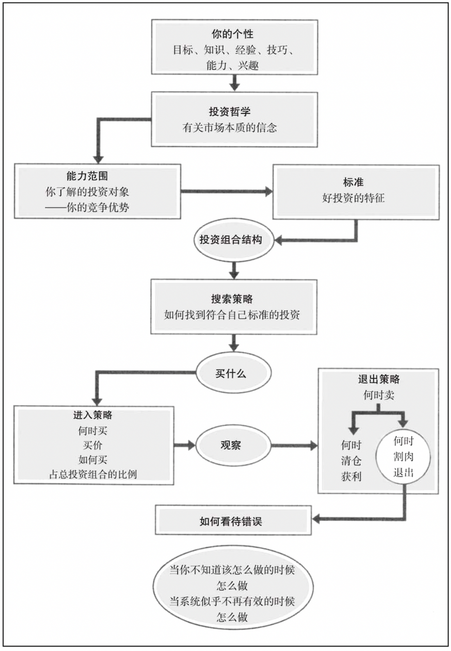 当然,公司选择只是投资系统中的一部分。再看一下上面那张图。你还需要学习「何时买」、「买价」、「仓位控制」、「退出策略」等等。