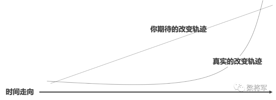 这种跳跃式的改变,就是长期主义者会享受的最大红利,因为只有努力的时间足够长,你才能得到最大的那块蛋糕。